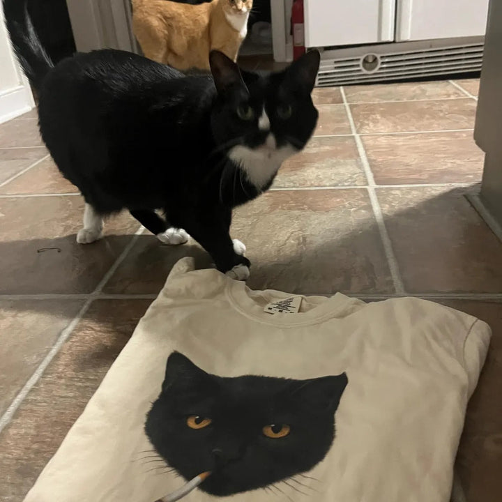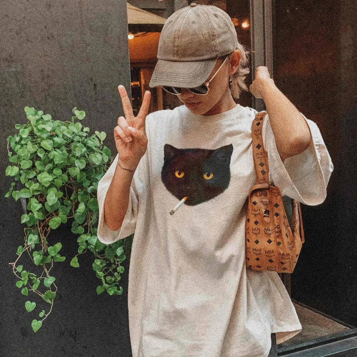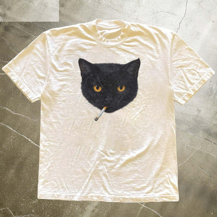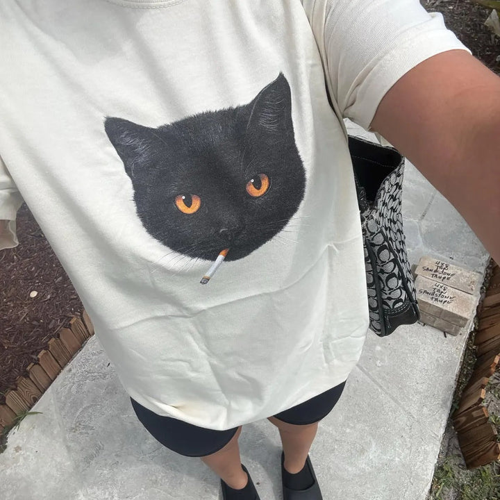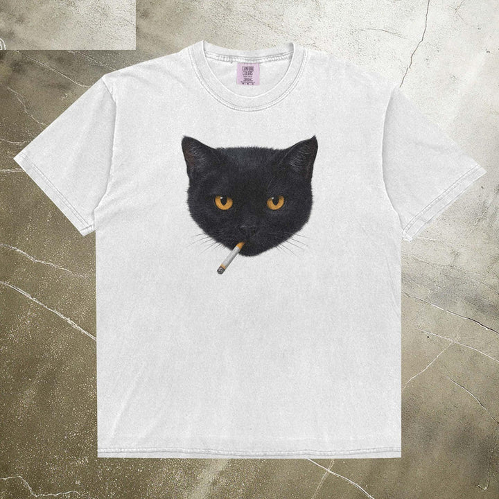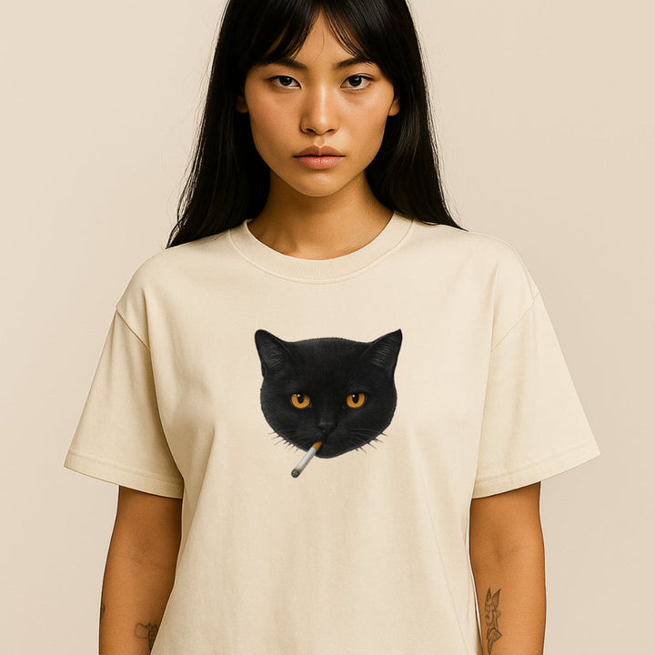 Camiseta Classica Black Cat Smoking Vida Noturna