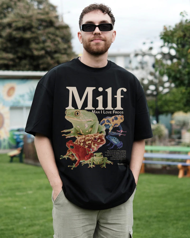 ✔️ Modelagem oversized autêntica — caimento largo, gola encorpada e ombros caídos